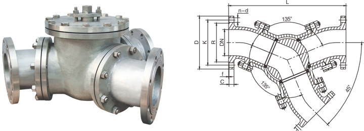 Y型135度三通粉料粉體換向球閥