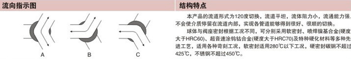 本產品的流道形式為120°切換,流道平坦、流體阻力小、流通能力強,不(bú)會使介質停留在流道內(nèi)部,實現各(gè)管道能夠得到(dào)很好的、很順(shùn)的切(qiē)換。