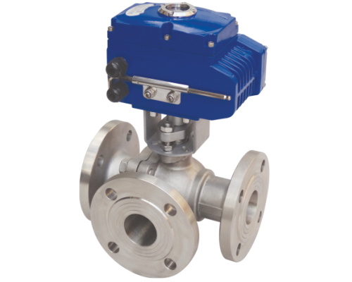 電動三(sān)通球閥是綜合國內外先進技術而開發(fā)的新型三通切換型調節(jiē)閥(fá)。標準球芯有L型三通雙口孔種,改變球芯與管道的相對角(jiǎo)度(dù),可以對三(sān)支管道流體實現(xiàn)不同的組合控製;T型孔道可起配(pèi)比作用,適用於液體、氣體、蒸(zhēng)汽(qì)等介(jiè)質的配比調節與控製。